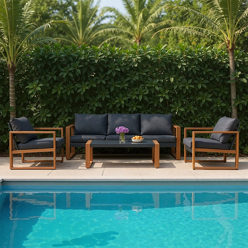 EVERITE Outdoor 4 Pieces Steel Conversation Set ,Faux Wood Grain Finish Frame Sofa,$1199.99