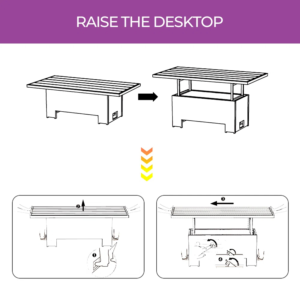 Lift-Top Multifunctionality: Effortlessly adjust the tabletop height with a smooth lift mechanism—use it as a coffee table for drinks, a dining table for snacks, or a temporary workspace, maximizing usability in one compact piece.