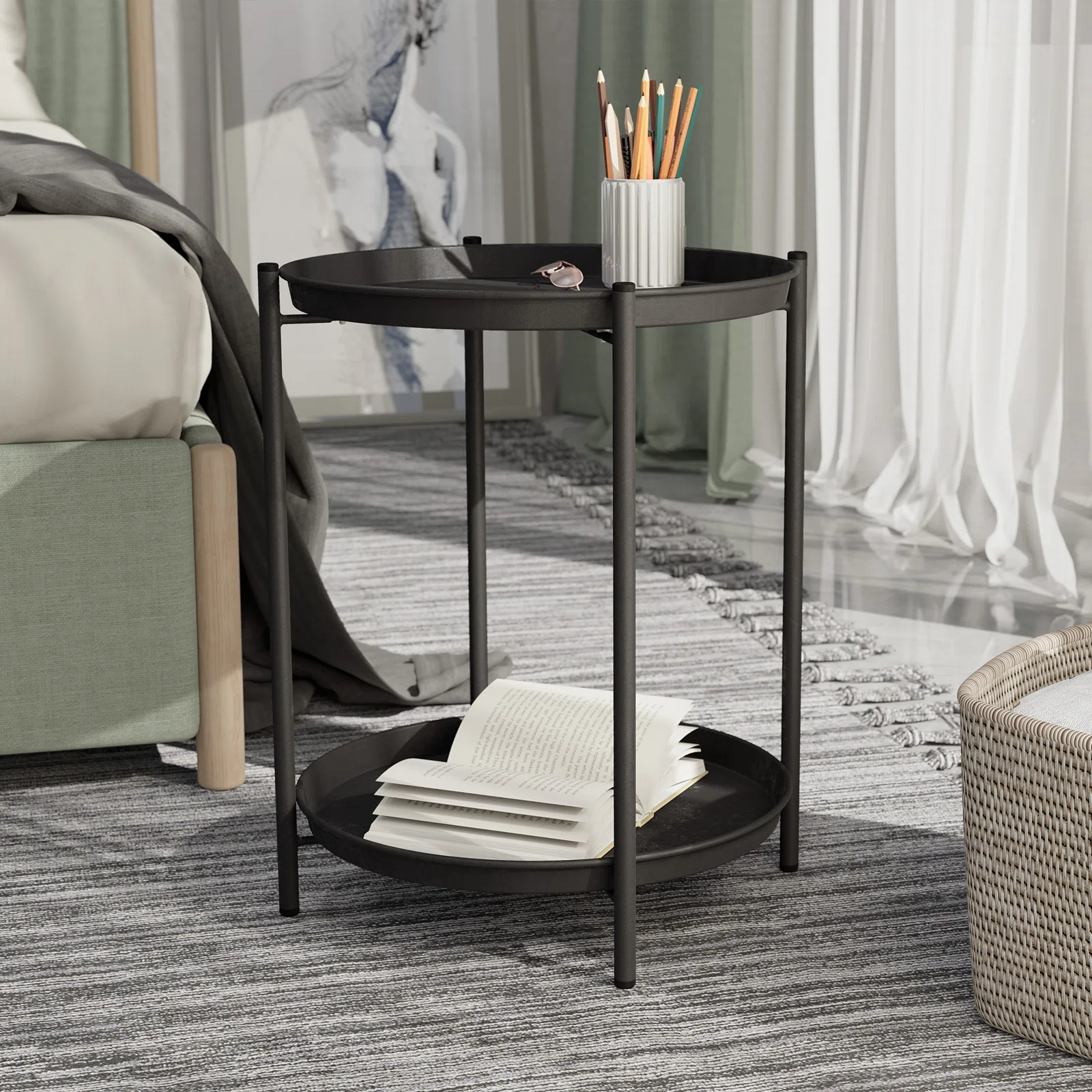 Lightweight and compact round shape makes it easy to move and place in tight spots, from beside a patio lounge chair to next to a bedroom bed, adapting to various living and relaxation scenarios.