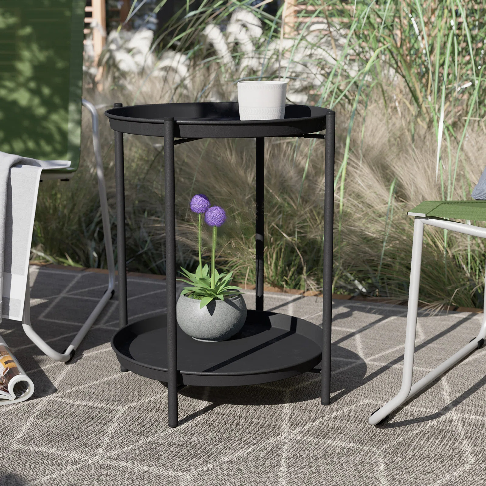 Weather-resistant steel build stands up to rain, sun and humidity outdoors, while the smooth finish resists scratches and stains for long-lasting use indoors without frequent maintenance.