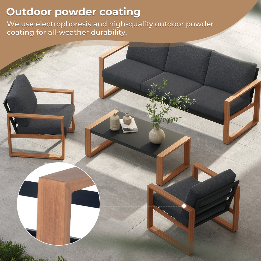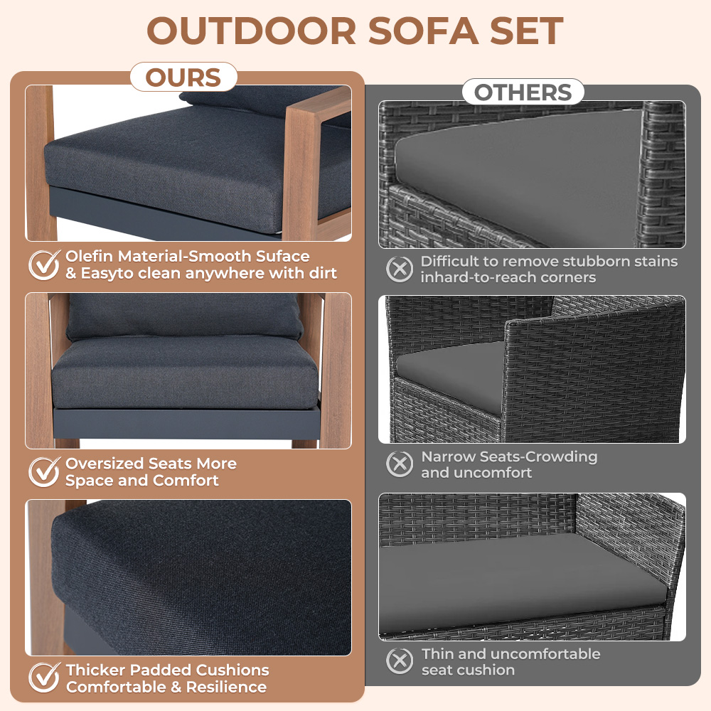Complete Set: Includes 2 sofas, a 3-person sofa, and a table, seating up to 5 people.